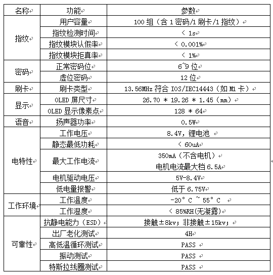 3.4開鎖用戶存儲(chǔ)個(gè)數(shù)為100組,開鎖記錄信息為512個(gè),此為門鎖本地貯存的開鎖日志,而云端開鎖日志不限制個(gè)數(shù)。